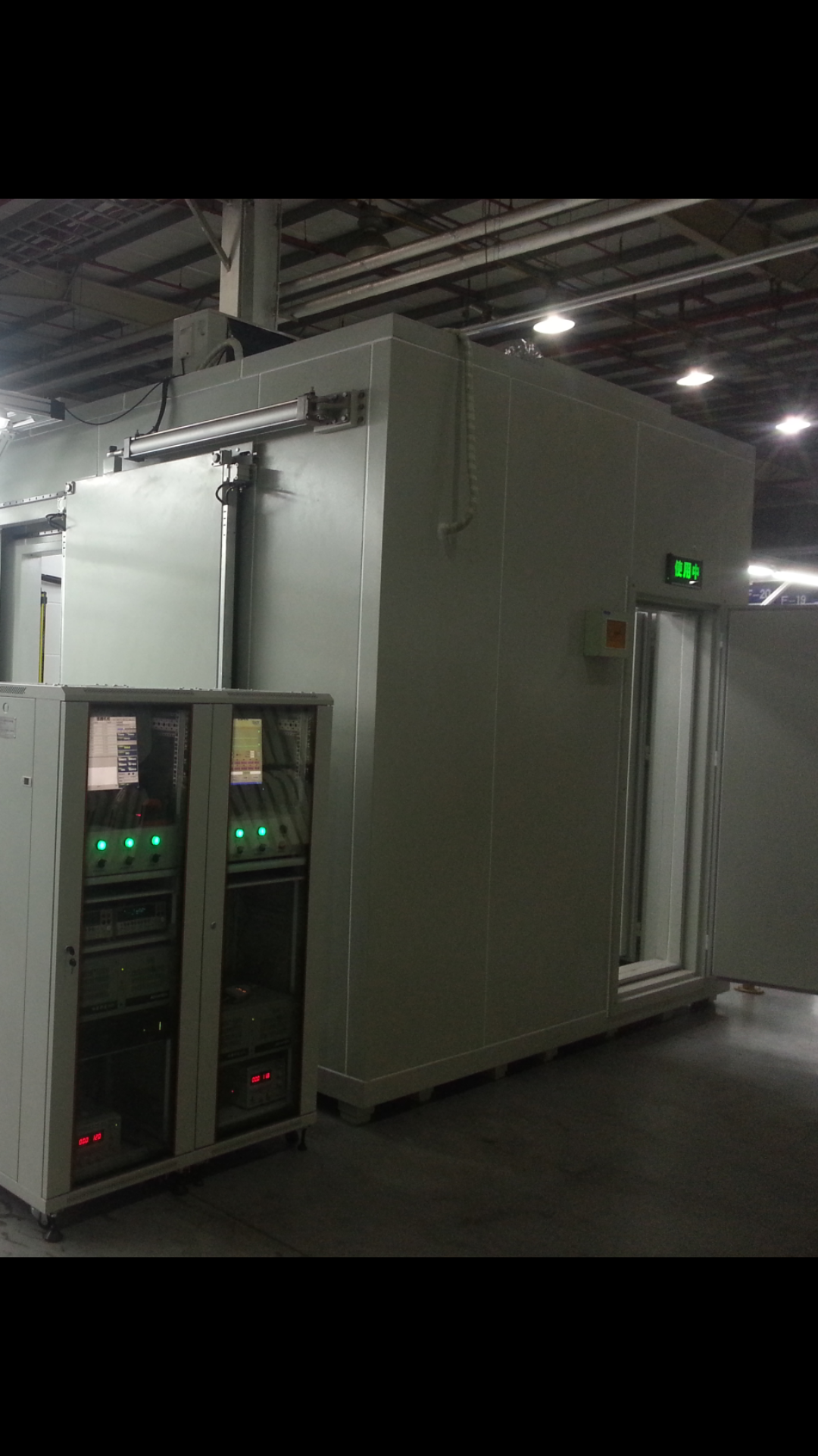 1流水線氣動滑軌門規(guī)格900*1800mm2隔音室規(guī)格3500*3500*2800mm3雙層多元聲墻體組成厚度為300mm,中間有50mm的吸音空腔4室外環(huán)境噪聲小于80分貝室內(nèi)本底小于30分貝標(biāo)j準(zhǔn)5外貼T1.2鋼板噴涂乳白色6室內(nèi)采用條形沖孔板噴涂7地臺采用彈簧減振器青浦500K8室內(nèi)配有1.5匹格力空調(diào)與雙通道消音換氣9照明采用防爆燈管白色10氣動門由紅外線光電感應(yīng)控制啟動合閉11氣動滑軌采用高級平板型規(guī)格進(jìn)口產(chǎn)品
