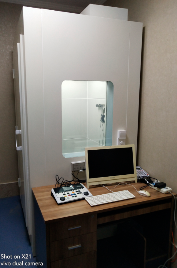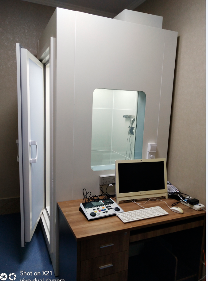 1.2 聲場(chǎng)測(cè)聽(tīng) 聲場(chǎng)測(cè)聽(tīng)是在聲場(chǎng)中通過(guò)揚(yáng)聲器給聲進(jìn)行測(cè)聽(tīng),常用了解小兒裸耳聽(tīng)力及助聽(tīng)器的選配效果,測(cè)試音為囀音,操作方法同純音測(cè)聽(tīng),聲場(chǎng)測(cè)試前要用聲級(jí)計(jì)效準(zhǔn)聲場(chǎng)(70dB效準(zhǔn)),測(cè)試距離為1m,兩個(gè)揚(yáng)聲器同受試者成等腰三角型,測(cè)試裸耳聽(tīng)力時(shí)好耳用耳塞或耳罩加掩蔽,評(píng)估一側(cè)助聽(tīng)器效果時(shí)可將一側(cè)耳助聽(tīng)器關(guān)掉,分別調(diào)試評(píng)估可獲得準(zhǔn)確的助聽(tīng)器效果評(píng)估圖。測(cè)試結(jié)果與長(zhǎng)時(shí)間平均會(huì)話語(yǔ)譜或語(yǔ)言香蕉圖比較對(duì)助聽(tīng)效果加以判斷。