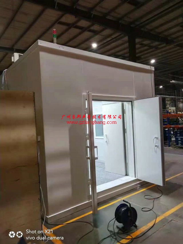 1工業(yè)產(chǎn)品測試評估靜音室外尺寸L3.98*W3.25*H3.05m內(nèi)尺寸L3.2*W2.6*H3m,雙門左右內(nèi)外對開,依據(jù)環(huán)境噪音四周無打樁及牛車來往小于75--80分貝(A)計(jì)權(quán),室內(nèi)本地小于35--40分貝(A)計(jì)權(quán),